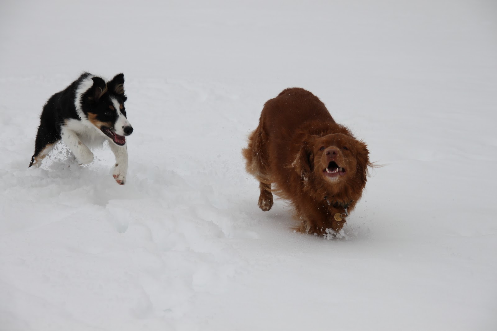 Viime päivinä ollaan treenailtu Riinan kanssa ihan säännöllisesti, suurimmaksi osaksi kotipihalla. Pitäisi luottaa koiraan enemmän, mutta jotenkin huomaan aina että oon varuillani jos vaikka joku naapuri kävelee pihalla. Totuushan on kuitenkin se, että jos Riina keskittyy tekemiseen niin eipä se pahemmin niistä ihmisistä välitä. Oon kuitenkin ajatellu et kun treenataan ominemme niin voidaan ihan hyvin treenata kotona, kun ei vieras paikka oikeestaan vaikuta Riinan tekemiseen. Yhteistreeneissä saadaan uusia paikkoja pennulle ihan riittävästi (: Ollaan tehty nyt seuraamista ensin namilla imuttamalla ja sitten palkka lelulla, liikkeestä maahanmeno niin ikään imuttamalla, sitten lelu, noutoa niin että lelut kokonaan piiloon ja sitten kannustan Riinaa kapulalle. Edelleen se kyttää palkkaa, mutta esim. eilen nosti ja lähti tuomaan miulle jo suht rivakasti (: Näiden lisäksi eilen tehtiin pitkästä aikaa tunnaria ulkona niin että palikka oli lumikasassa. Hyvin meni sekin. Liikkeestä seisomista on tehty lelulla, pysähtyy hyvin, jos imuttaa niin Riina meinaa mennä maahan/istua, mutta kyllä sekin lopulta onnistuu. Eteentuloja herkuilla ja lelulla, lelulla jotenkin vaikeempaa, mutta edistytään. Vauhtiluoksetuloja jos on avustaja, muuten herkulla lyhyestä matkasta eteentuloja herkulla. Paikkamakuut tosi lyhyitä koska meinaa nousta, paikkaistumiset vähän pitempiaikaisia. Ollaan löydetty nyt Riinan kanssa sellanen mukava tekemisen fiilis tohon treenaamisen, ollaan ainakin vähän lähempänä sitä meille oikeaa tapaa tehdä töitä (: Kiva juttu! Tiistaina käytiin raunioilla Ullan ja Jennin kanssa, yhdistettiin ekaa kertaa treeneihin myös vähän tottista. On niin kiva nähä kun Riina nauttii siellä tekemisestä, niin itse etsimisestä kuin ketteryydestäkin (: On tosi kiva että se tykkää oikeestaan kaikesta tekemisesta, myös siitä tottiksesta ((: Tajusin justiinsa ettei tässä taida olla kun kuukauden päivät enää välissä ennen kuin Riina sisaruksineen täyttää jo puoli vuotta, järkyttävän nopeasti menee aika...